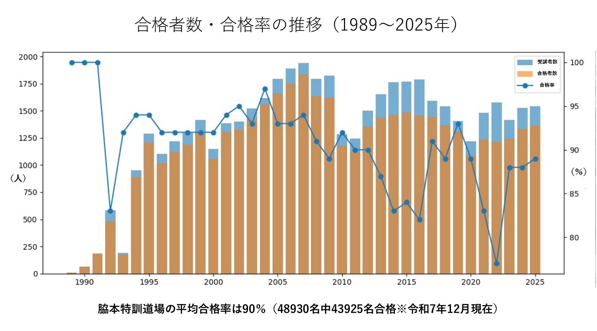 脇本特訓道場・合格率の推移(令和7年12月現在)